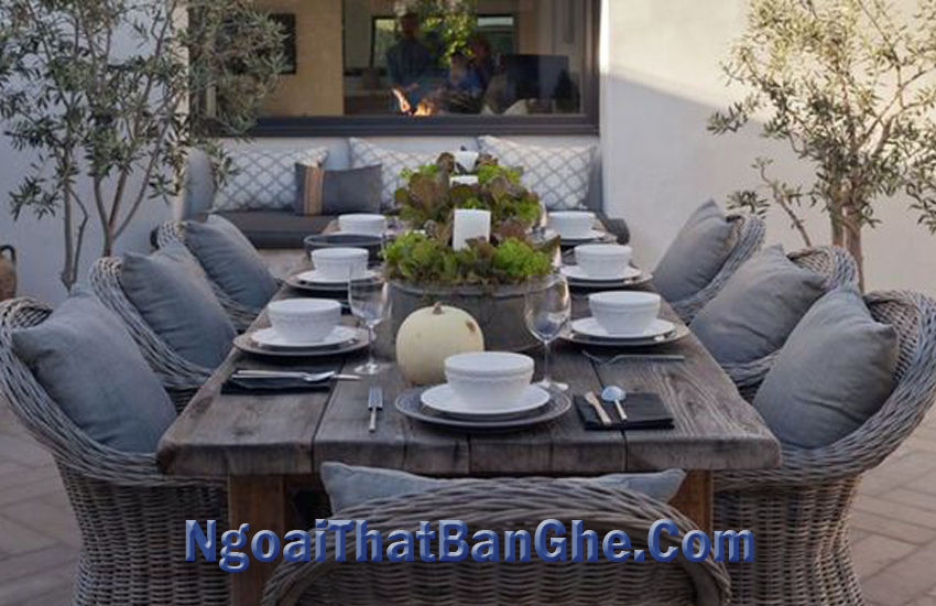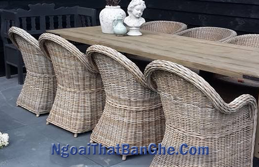 Bộ bàn gỗ và ghế ăn ngoài trời mây nhựa MN15